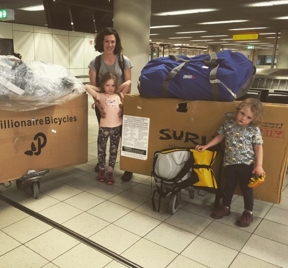 The answer is yes. We box up the bikes and check them in as luggage on the aeroplane. Most airlines accomodate bicycles as part of ones baggage allowance. I should probably dedicate an entire post to this one day as we have been transporting bikes on planes since 2004 and have a large amount of accumulated knowledge.