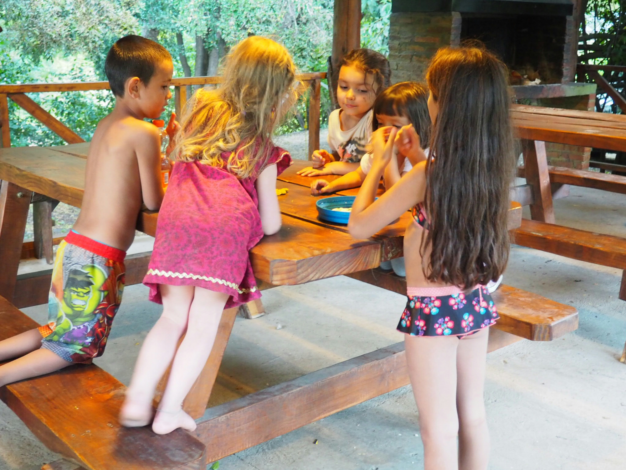 Amaya and Sebastian are loving it. Amaya’s imagination is limitless and she spends hours by the lake in rapidly evolving, fantastical worlds. Sebastian throws rock after rock into the water, he wades through streams, collects wood for the fire, sits importantly on his log and from time to time is permitted into his big sister’s imaginary world.