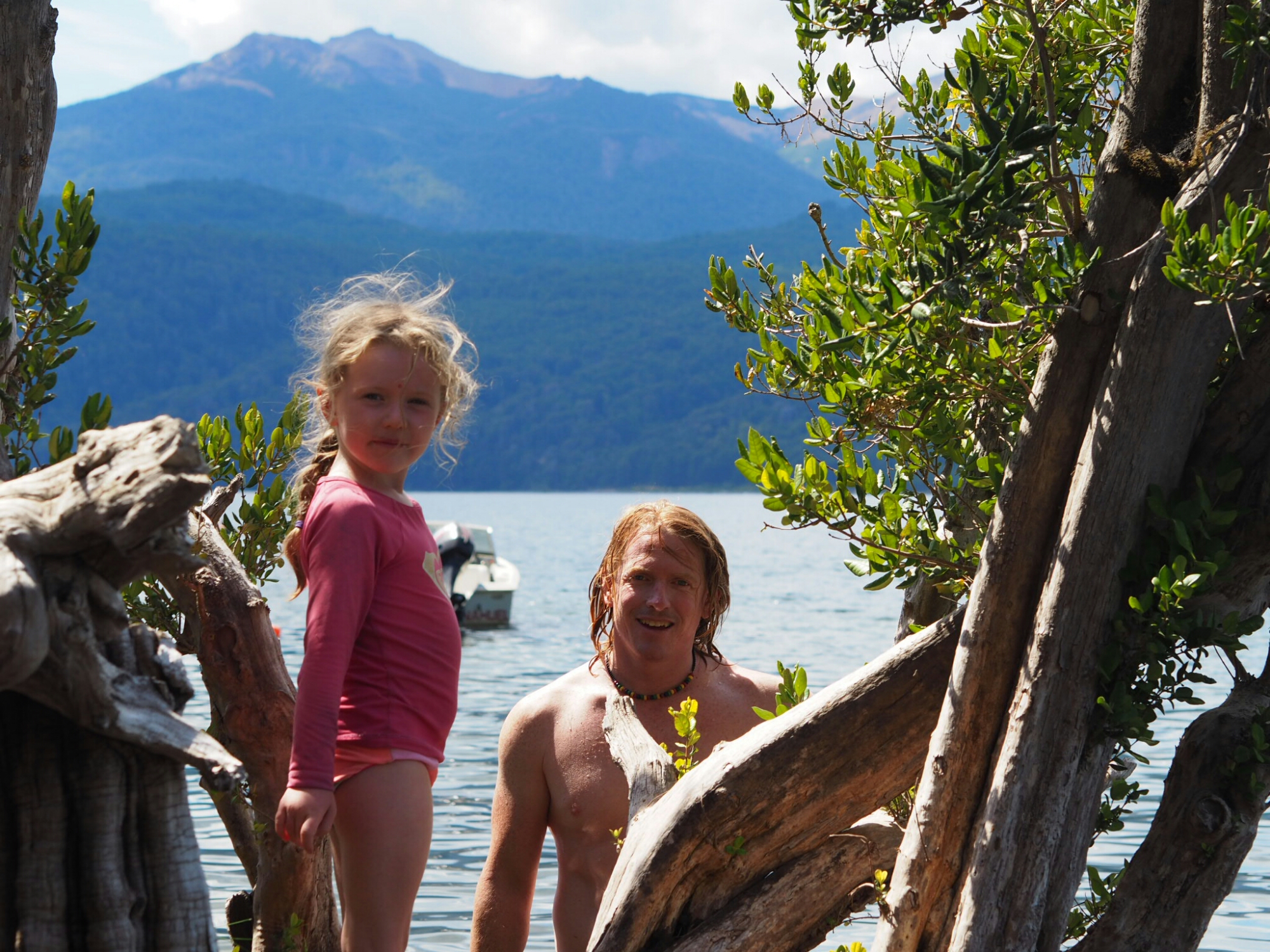 The last 4 days have been magical. We have been camping on the edge of a lake near a small town called Villa La Angostura. We are surrounded by gigantic mountains, some of which are volcanoes that occasionally spew ash into the air which creates a surreal misty effect. The lake is fresh and cold, and is fed by icy glacial streams. We are camped in a pine forest and have a cosy fireplace next to our small tent. It is perfect for us.