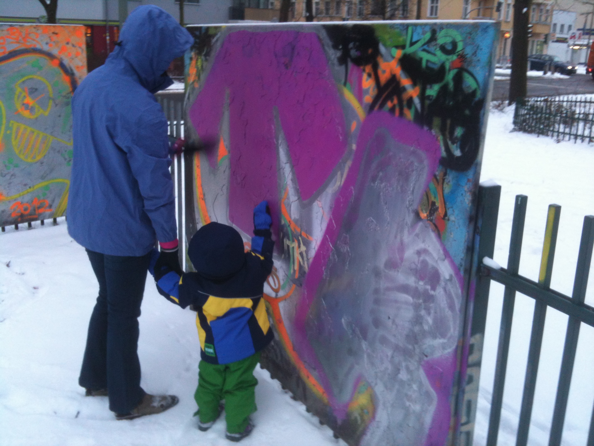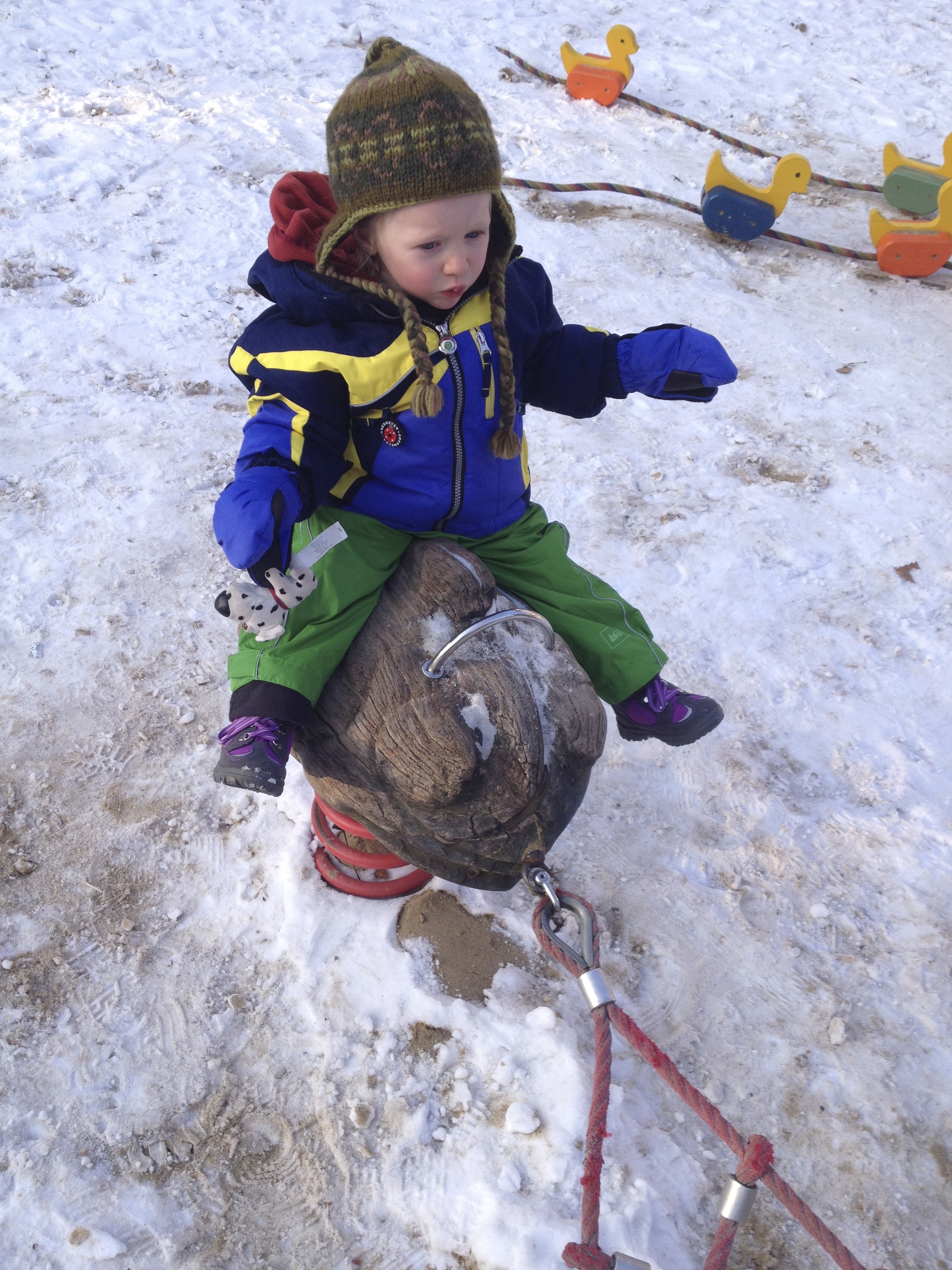 The parks are so cool in Berlin – each one is unique and made from natural materials! Temperature of -10 was not going to stop Amaya from getting on the swing!
